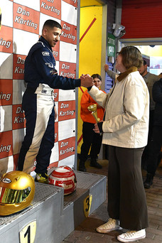 שלב הגמר בן 30 הדקות כאמור מתחיל עם גמר ב' כשעל הגריד מסתדרים 13 הנהגים. רק אחד מהם יעפיל לגמר א' הבכיר, המנצח כמובן, ואת טור הנהגים מובילה גלי רייסנר אל עבר אות הזינוק כשאחריה אלון אדרי וסער פריד. רייסנר פותחת מצוין עם מבט נחוש קדימה אותו ניתן לראות גם מבעד למשקף הקסדה המעוצבת שלה. אדרי מעט מתמהמה, מאפשר לה לפתוח פער קל, אך בעצמו פותח פער מפריד שמתמהמה עוד יותר ממנו. הפערי הקלים האלה במירוץ שכזה אמנם מאפשרים להם להתרכז רק בעצמם אך זה רק עניין של זמן תרתי משמע. בעוד מספר הקפות יגיעו המובילים אל הסמנים האחוריים והיות ובמירוץ כזה לא משתמשים בדגל הכחול המורה לפנות את הדרך, שם עשויה או עלולה לבוא הדרמה. והיא מגיעה במספר מובנים. בזמן שאדרי מנסה לצמצם את הפער שלו מרייסנר, פריד נצמד אליו עד כדי נגיעה ממנה הוא מרוויח מקום ויריבו מפסיד שלושה. השלט האלקטרוני מציג מיד ענישת הורדת מיקום והמרוויח הגדול הוא בכלל נח בבלי שאם המירוץ היה מסתיים עכשיו הוא היה מסיים שני. ולמה מרוויח בגדול? בעוד מספר הקפות תבוא דרמה נוספת כשרייסנר לא תצליח להימנע מסחרור של סמן אחורי בפניית ההיירפין הראשונה ובכך תאבד את ההובלה במירוץ שעד כה היה מושלם מצידה. פריד שכרגע מוביל בפועל את המירוץ לא מצליח לשמור על מקומו ונעקף ע"י בבלי שבתום חצי השעה יחצה ראשון את קו הסיום ויקבל את כרטיס הבונוס כשאחריו נעם כוכבי ועומר כהן שמתקדמים מקום כל אחד בעקבות הענישה לפריד. הוא ירד עוד מקום אחד בעקבות הענישה הזאת מה שיעלה את אדרי למקום הרביעי.
